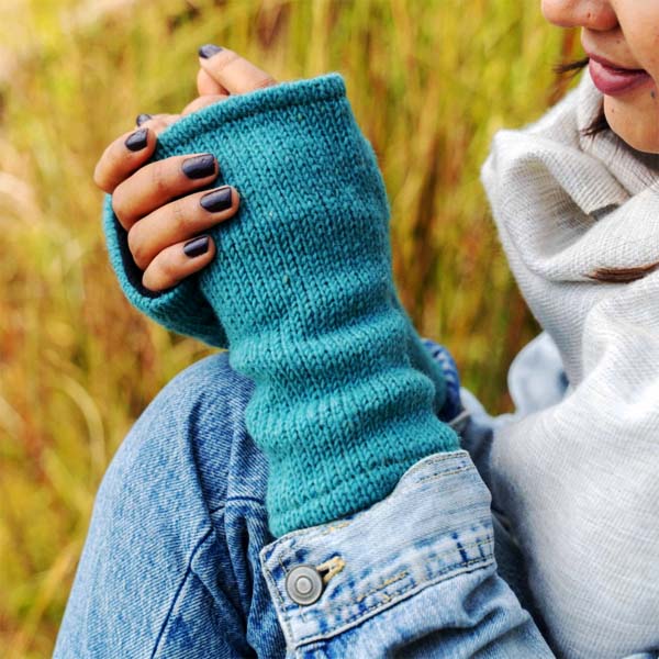 Deze gebreide wollen handwarmers van ‘Sjaal met Verhaal’ uit Nepal zijn in de kleur Turquoise. De binnenkant is gevoerd met fleece. Deze handwarmers zorgen ervoor dat je handen heerlijk warm blijven, er geen koude lucht in je mouwen stroomt én je kunt je vingers ook nog gebruiken! Echt een aanrader voor elke koukleum. One size fits all.