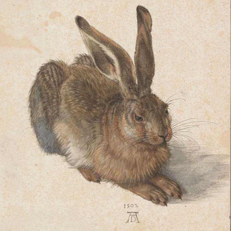 Albrecht Dürer maakte dit meesterwerk in 1502 met ongekende precisie en detail. Het werk toont een haas alsof hij zo uit de natuur is gesprongen, en wordt geprezen om Dürers vaardigheid om textuur en levensechte nuances vast te leggen. Dit tijdloze kunstwerk blijft een symbool van Dürers uitzonderlijke talent.