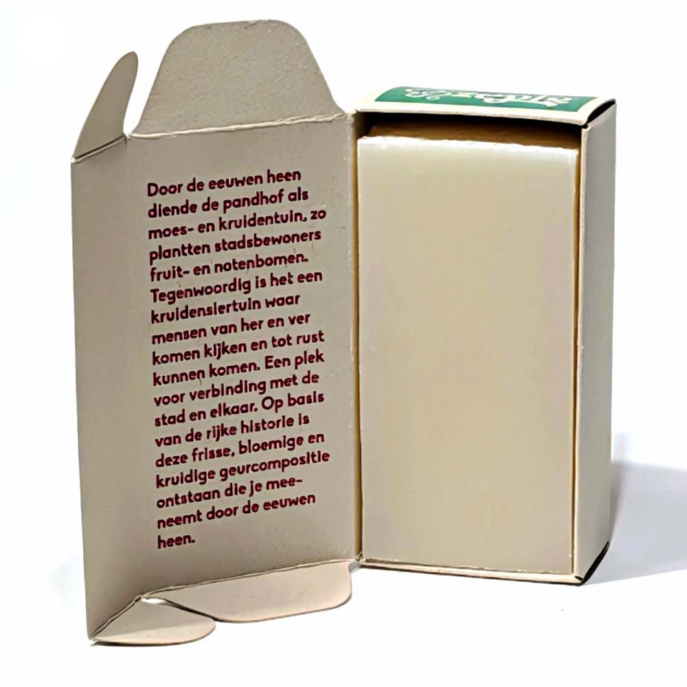 Een stukje Utrechts ambacht en geschiedenis komen samen in de verzorgende Domzeep! Door de eeuwen heen diende de Pandhof van de Dom als moes- en kruidentuin, zo plantten stadsbewoners fruit- en notenbomen. Vandaag de dag is het een kruidensiertuin waar mensen van her en ver komen kijken en tot rust kunnen komen. Een plek voor verbinding met de stad en elkaar.